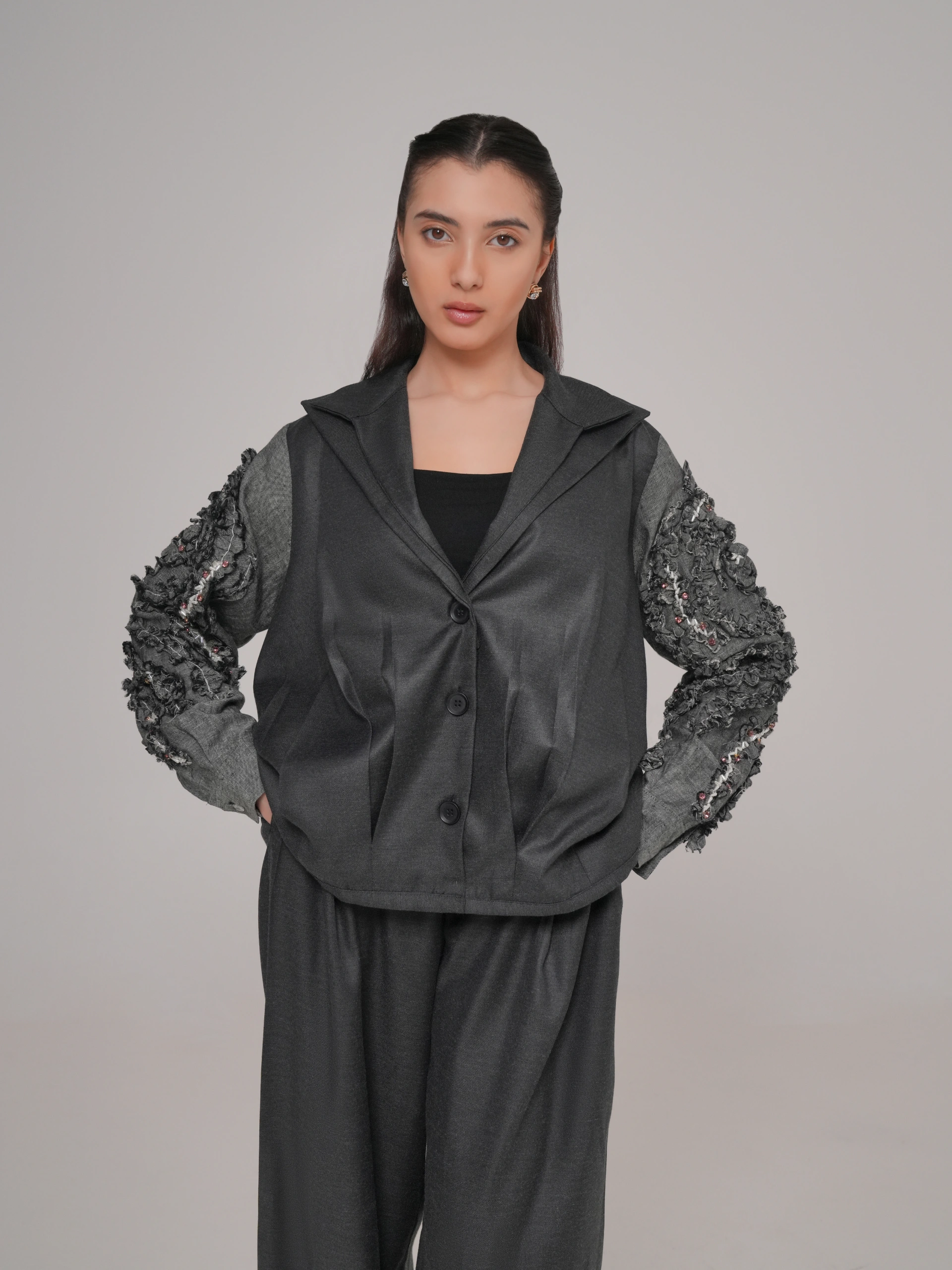 | المقاس | طول البنطلون (سم) | الخصر (سم) | طول الجاكيت (سم) | الصدر (سم) | الكتف (سم) | الأكمام (سم) |